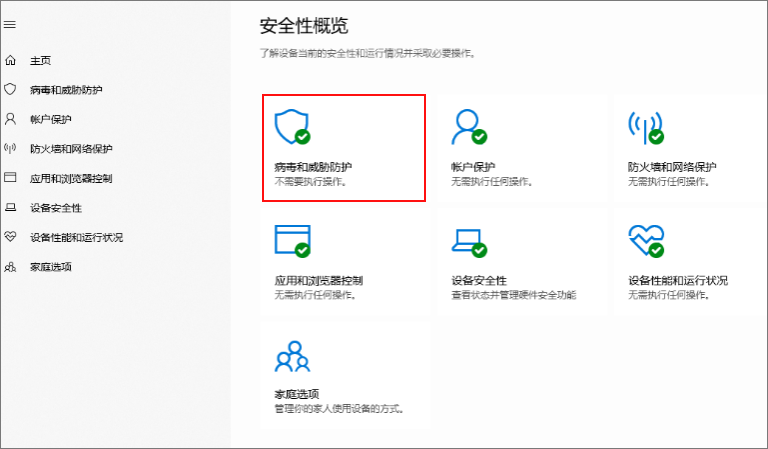② 打开Windows Defender之后会弹出下图界面,选择病毒和威胁防护。